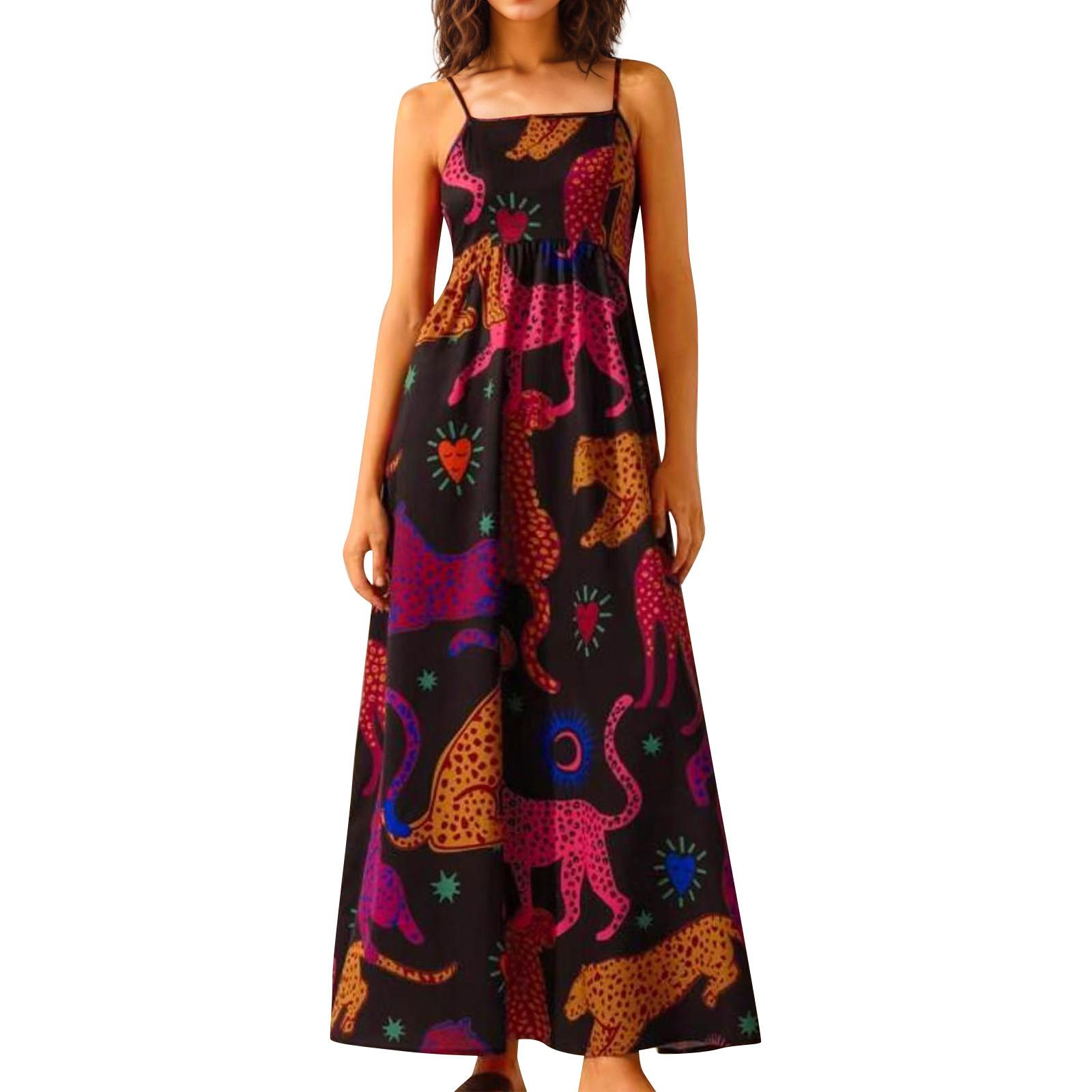 Женское повседневное модное винтажное платье с цветочным принтом и подтяжками, элегантное праздничное платье M чёрный