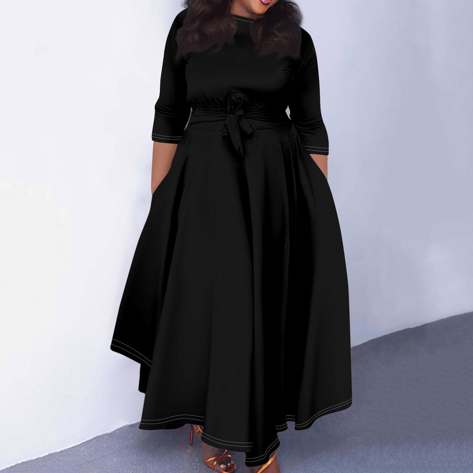 Женское повседневное модное однотонное свободное платье большого размера с круглым вырезом и рукавами три четверти на карманных бретелях XXXXXL чёрный