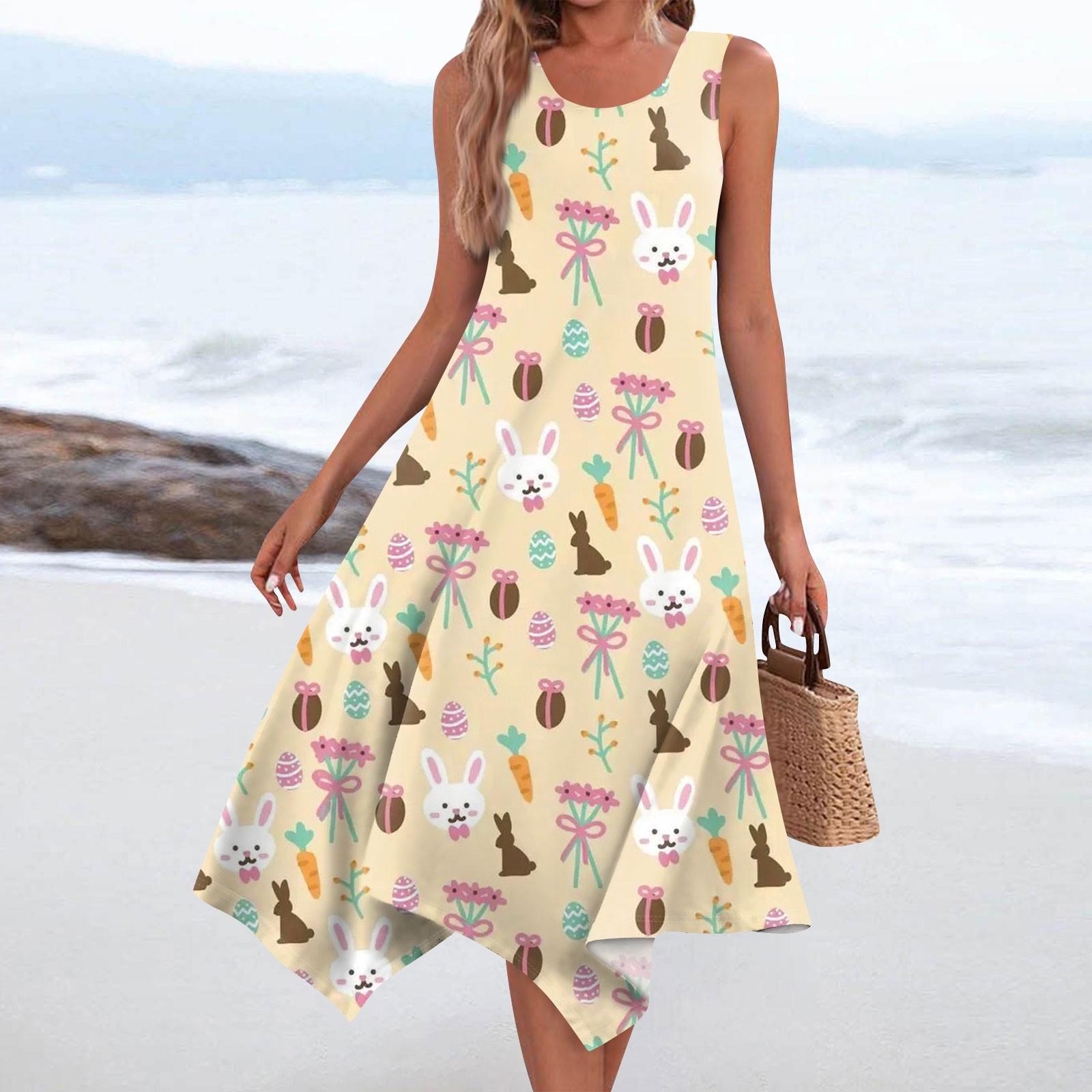 Женское повседневное модное платье миди без рукавов с круглым вырезом и нерегулярным подолом M хаки