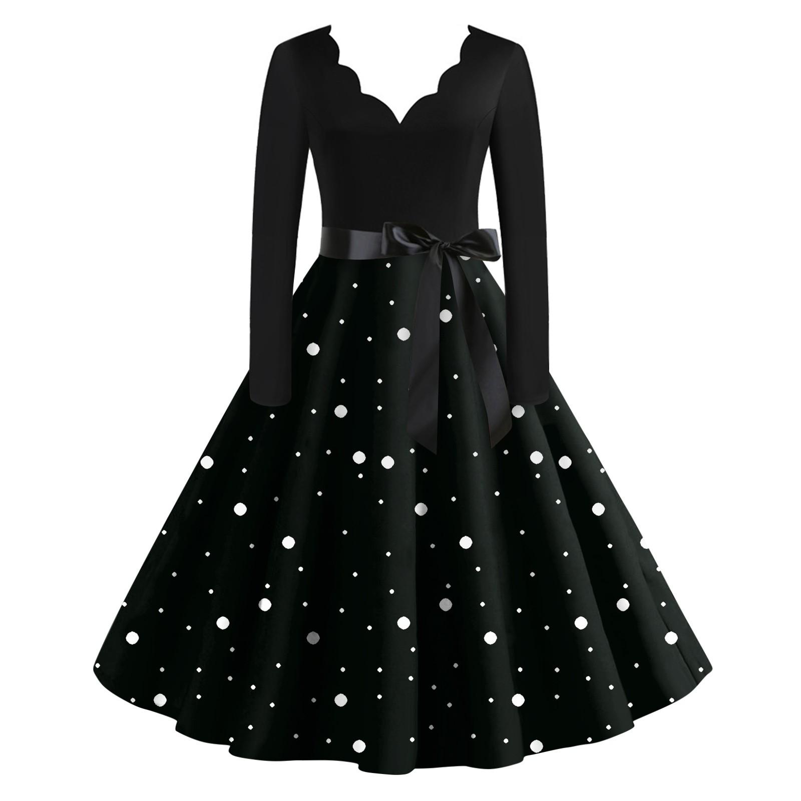 Женское повседневное модное платье с V-образным вырезом и длинными рукавами в стиле ретро с принтом в горошек XXXL чёрный