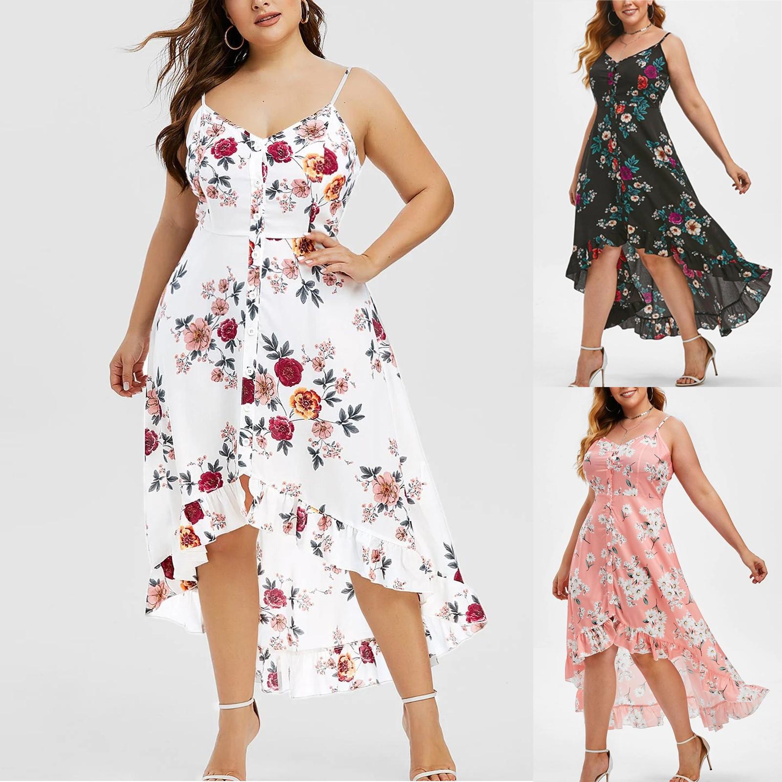 Женское повседневное платье с V-образным вырезом и принтом в виде оборки и пуговицами больших размеров, длинное платье XL чёрный