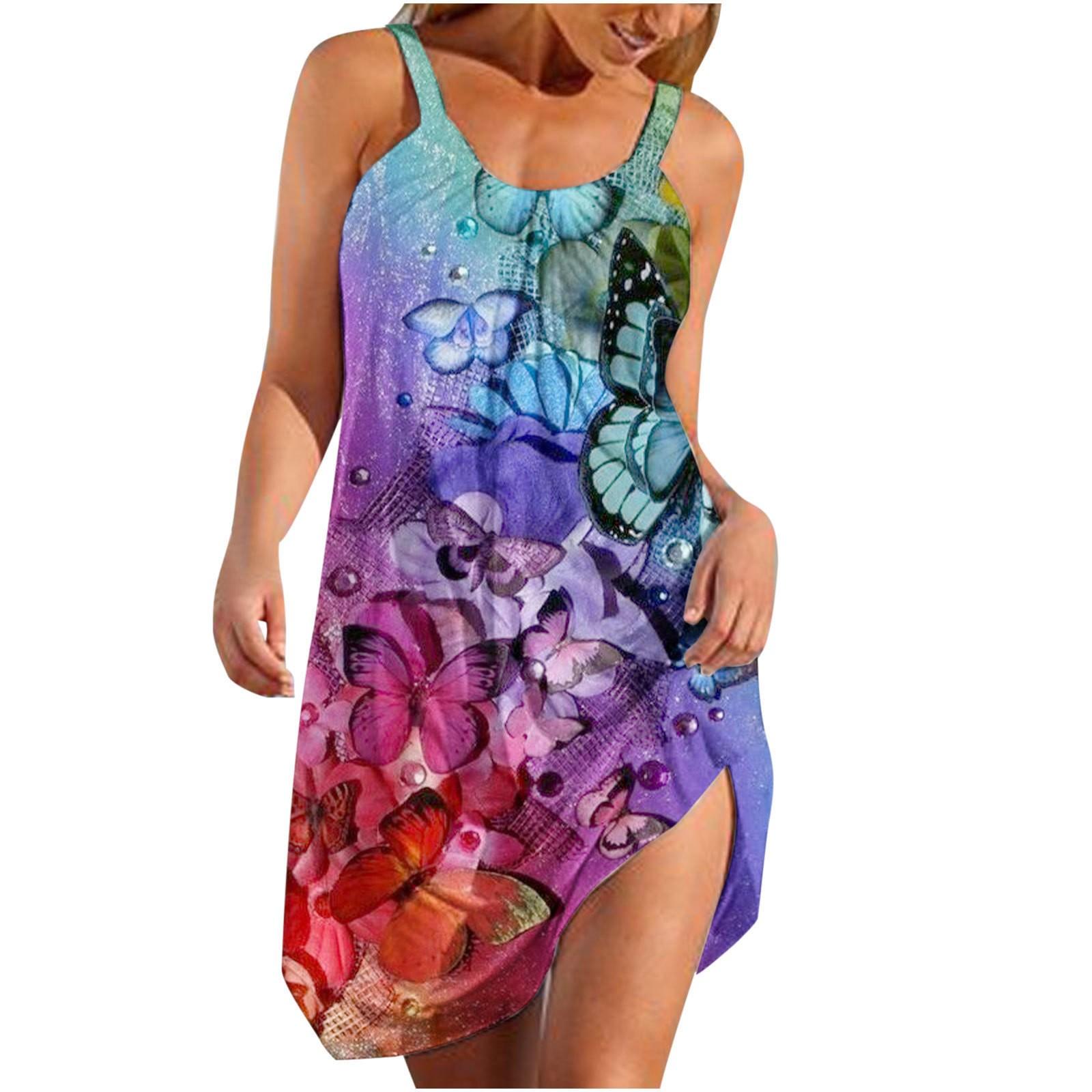 Женское повседневное пляжное платье в стиле бохо с цветочным принтом, милое струящееся платье-майка без рукавов L фиолетовый