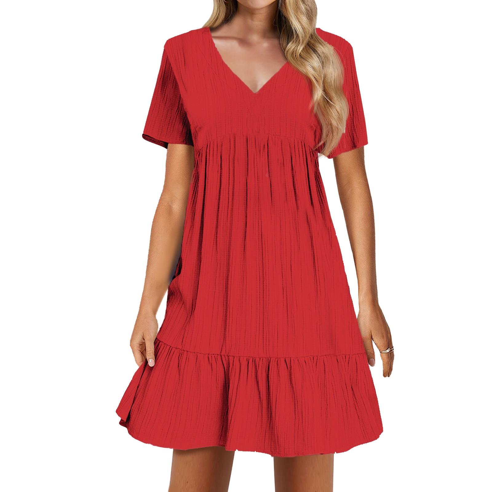 Женское повседневное сексуальное однотонное свободное платье с v-образным вырезом и короткими рукавами в стиле пэчворк XL красный