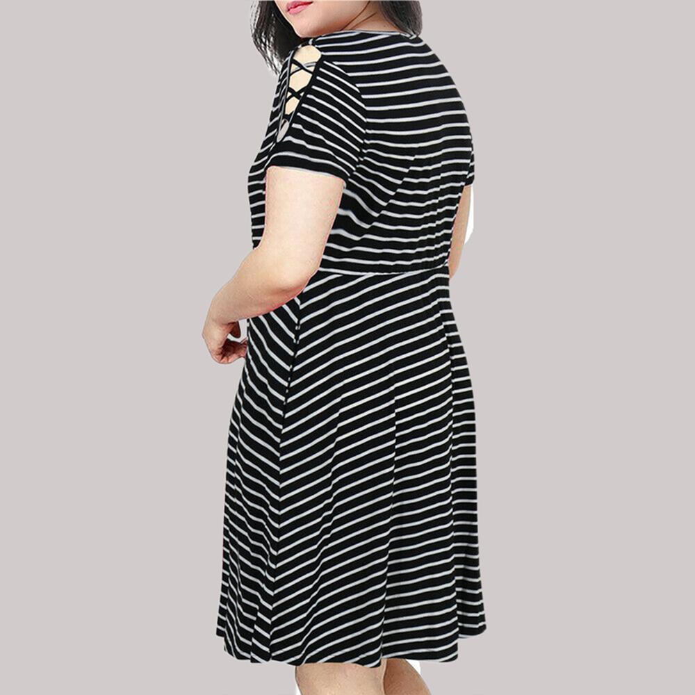 Женское полосатое платье с круглым вырезом больших размеров Мини-сарафан для летнего отдыха на пляже