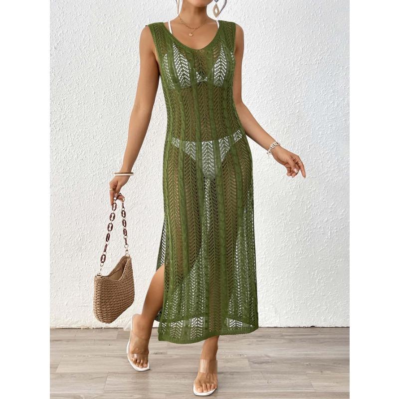 Женское праздничное пляжное платье с открытыми плечами, сексуальное длинное платье с разрезом one size армия зеленый