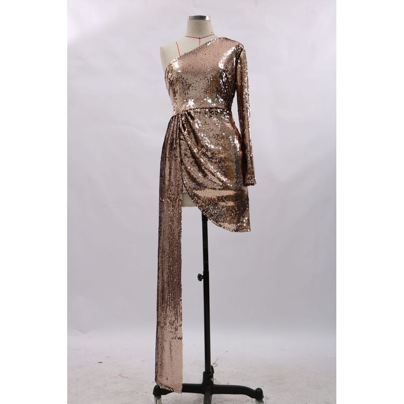 Женское приталенное платье для вечеринки с пайетками и асимметричным подолом Gold L