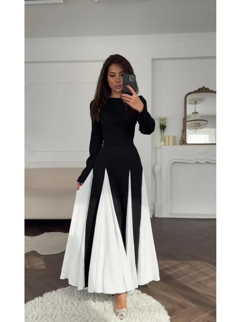 Женское ретро вечернее платье с завышенной талией, колор-блоком, круглым вырезом и длинными рукавами Small чёрный