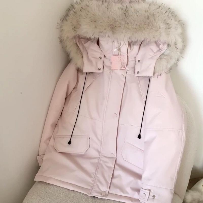 Женское розовое пуховое пальто с капюшоном на флисовой подкладке, маленький размер, зимняя коллекция 2024 XL