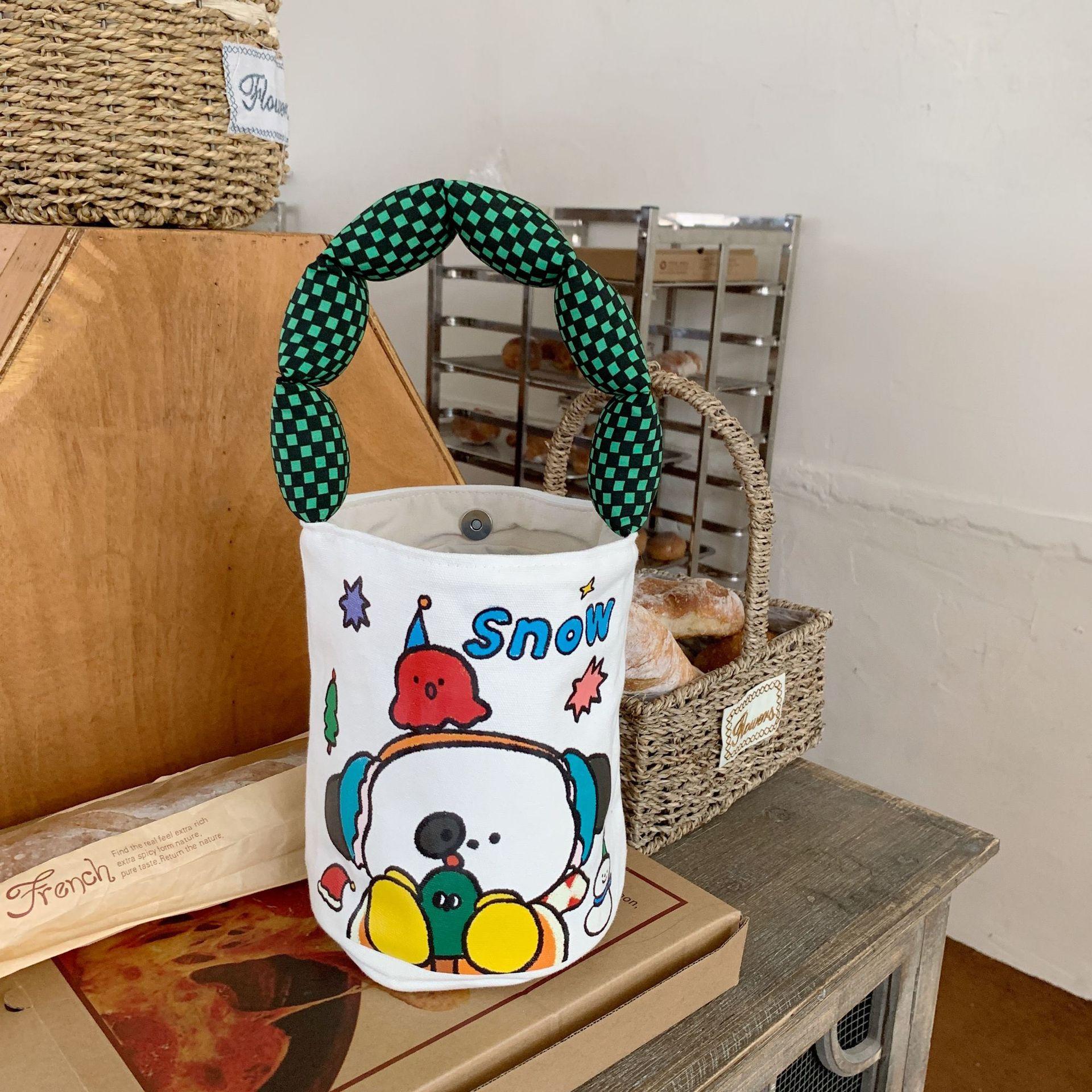 Женское ручное ведро с мультяшным принтом для обеда, универсальная холщовая сумка OneSize белый