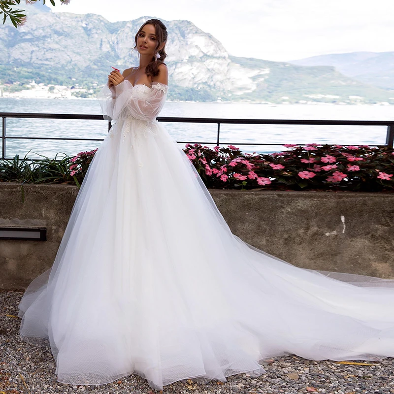 Женское свадебное платье с открытыми плечами, ТРАПЕЦИЕВИДНОЕ ПЛАТЬЕ в стиле бохо с длинным рукавом, цветочным принтом, ручной работы, для не...
