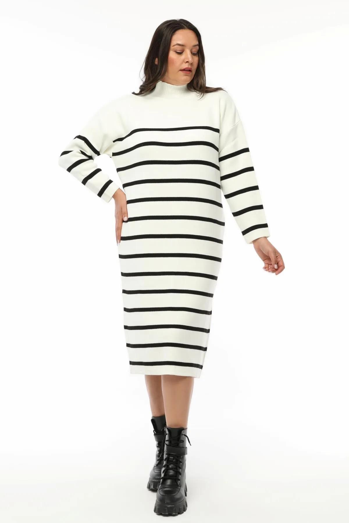 Женское свободное трикотажное платье больших размеров в полоску, белое платье One Size белый