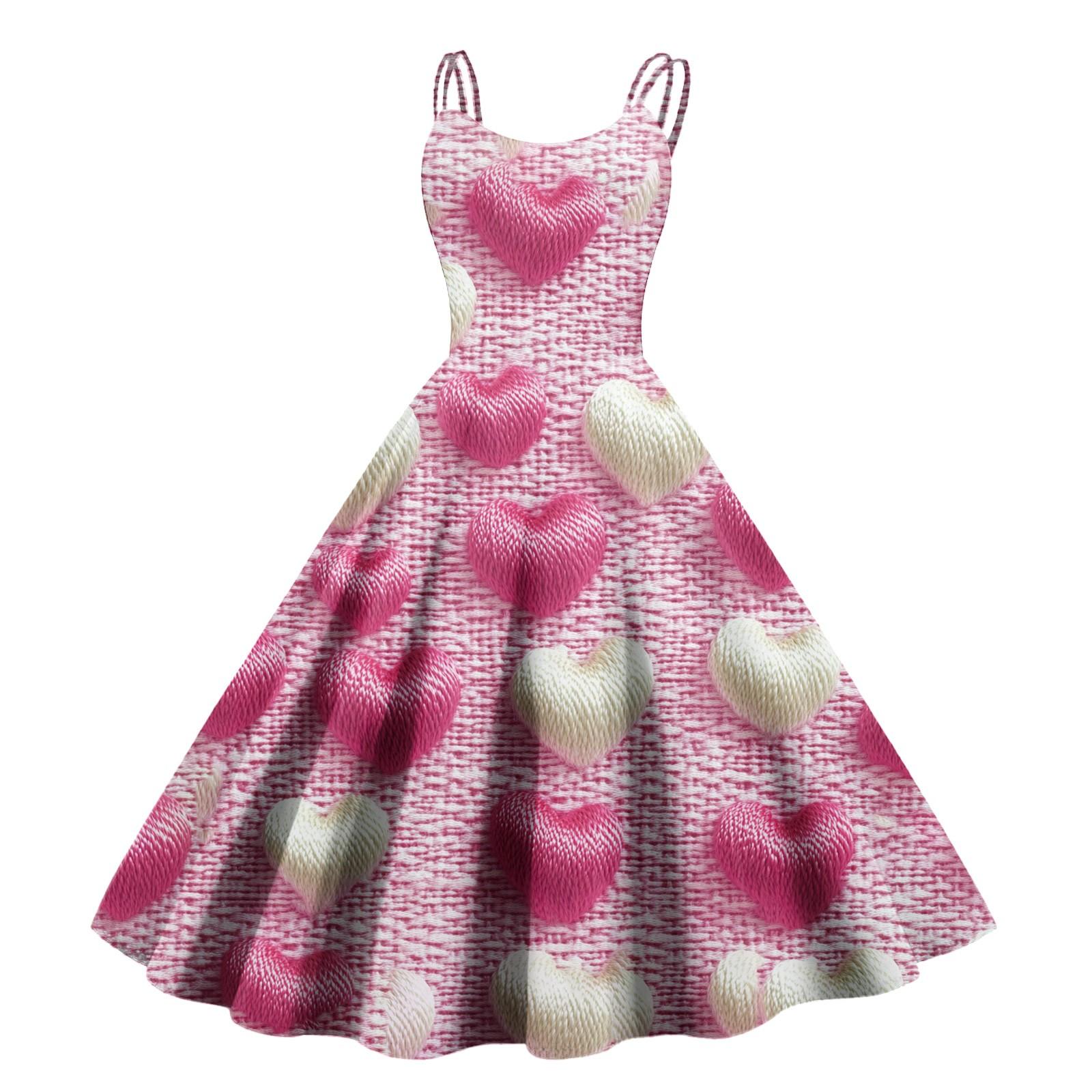 Женское сексуальное винтажное платье с открытыми плечами и принтом в виде сердечек ко Дню святого Валентина L