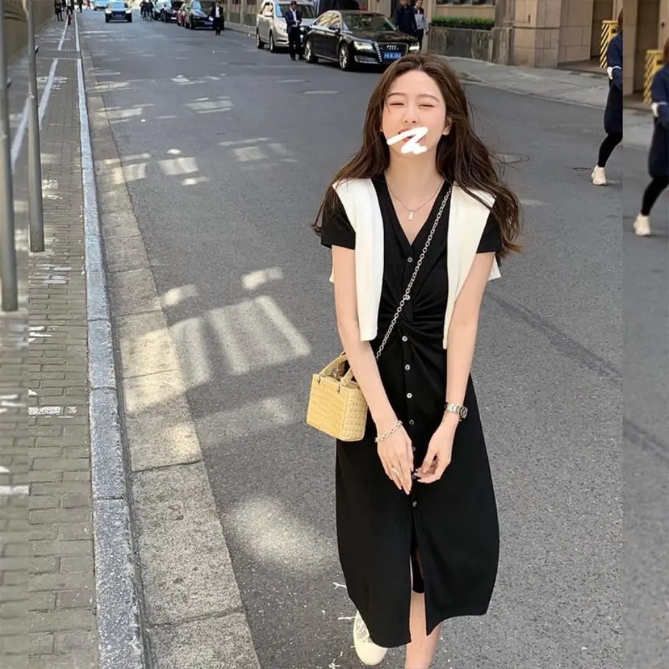 early autumn new korean style loose fashion khaki hepburn wind over the knee mid-length temperament windbreaker jacket women