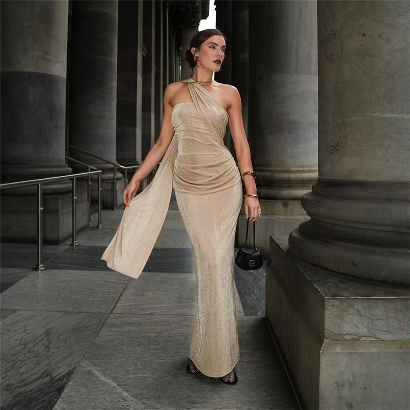 Женское сексуальное облегающее платье с открытой спиной, вечернее платье без бретелек с завязкой-лентой, вырез халтер, идеально подходит для гламурных вечеринок или официальных мероприятий S хаки