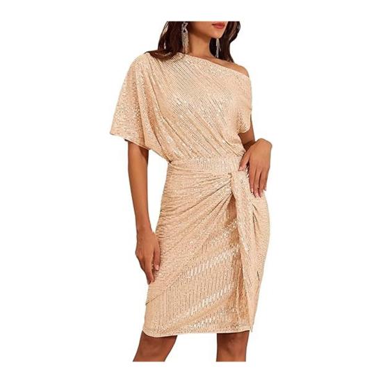 Женское сексуальное облегающее платье с пайетками, блестящее мини-платье с одним плечом и драпировкой, сверкающая клубная одежда для коктейльной вечеринки M