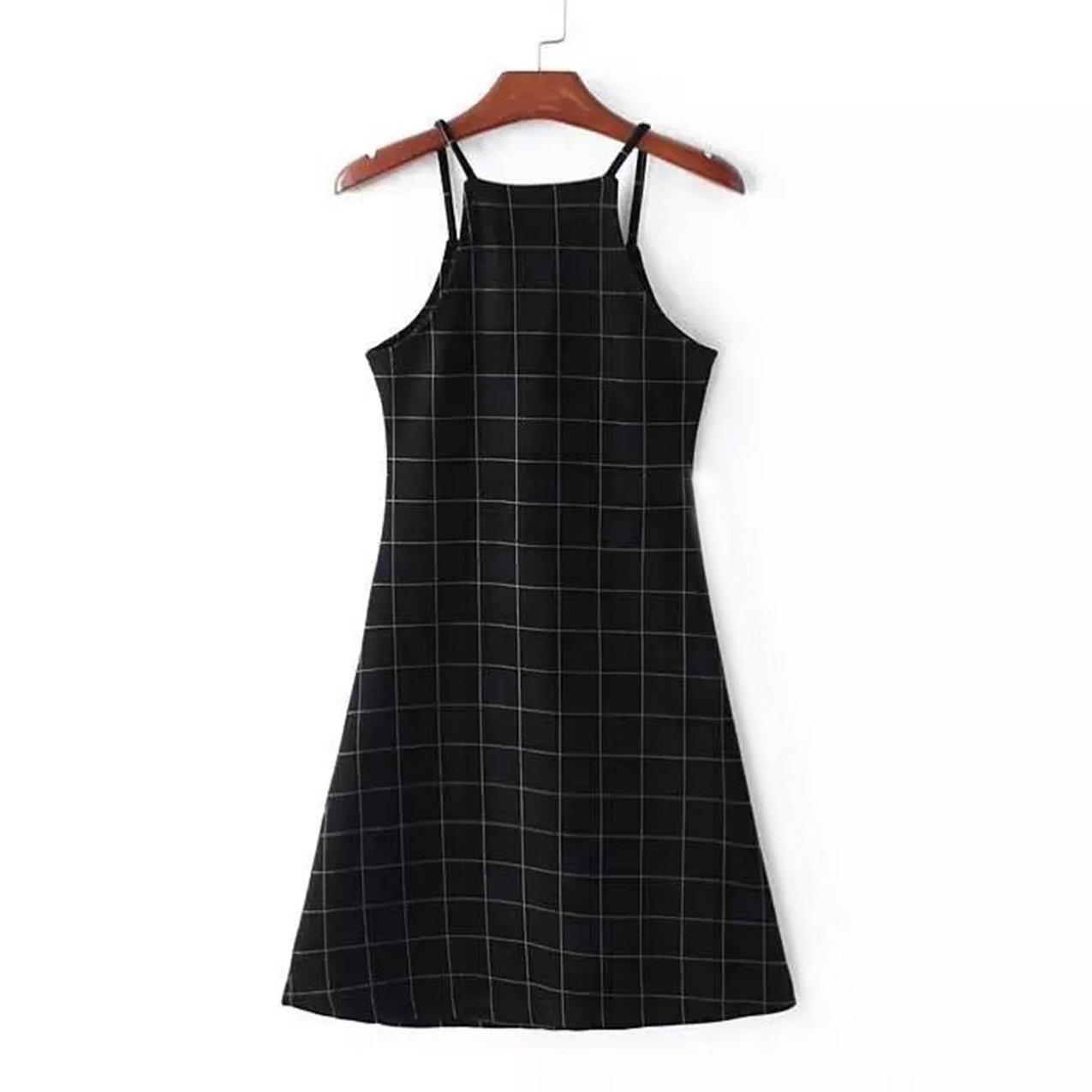 Женское сексуальное платье без спинки и рукавов А-силуэта, винтажная клетка, юбки выше колена, трендовые вещи, которые должны быть у каждой, модные универсальные наряды L чёрный