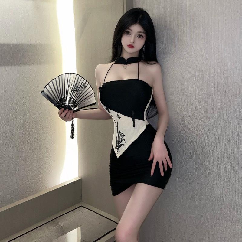 Женское сексуальное платье в стиле ретро с принтом в обтяжку L чёрный