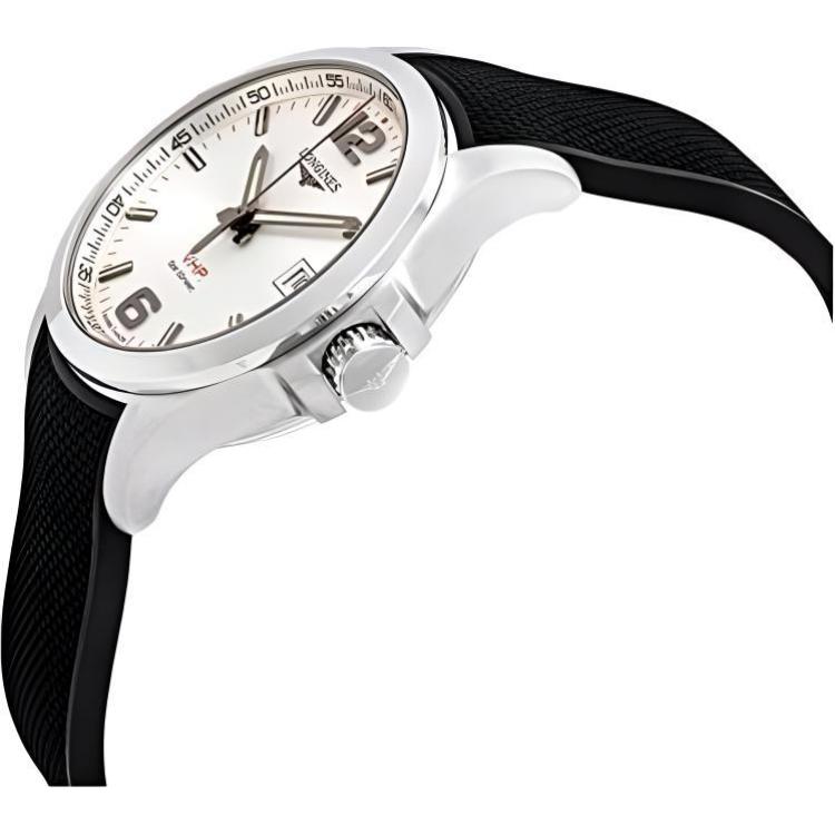 Мужские часы с кварцевым механизмом LONGINES, корпус 41 мм из нержавеющей стали, белый циферблат, ремешок из резины