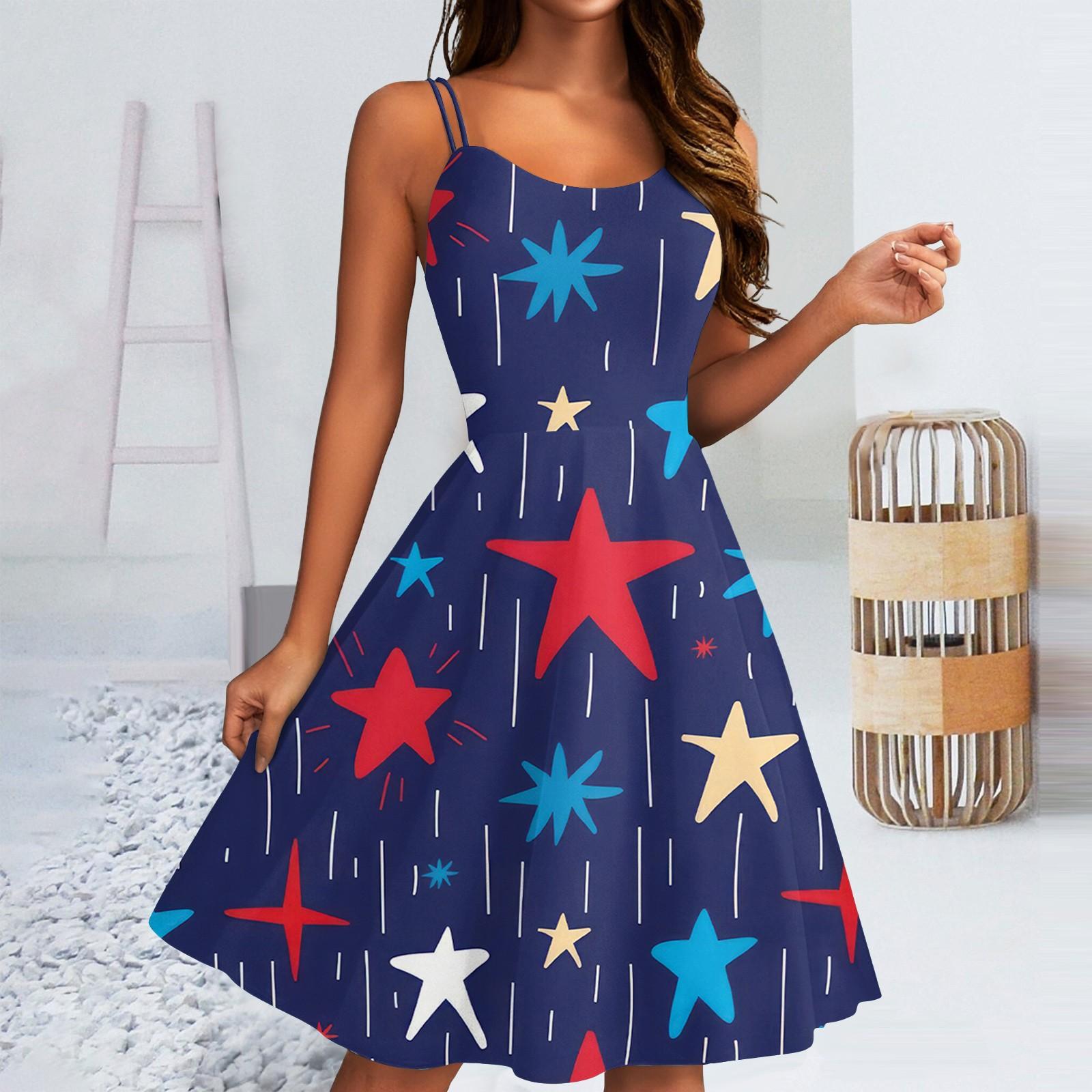 Женское сексуальное платье с открытыми плечами в стиле панк-винтаж с принтом «День независимости» M синий