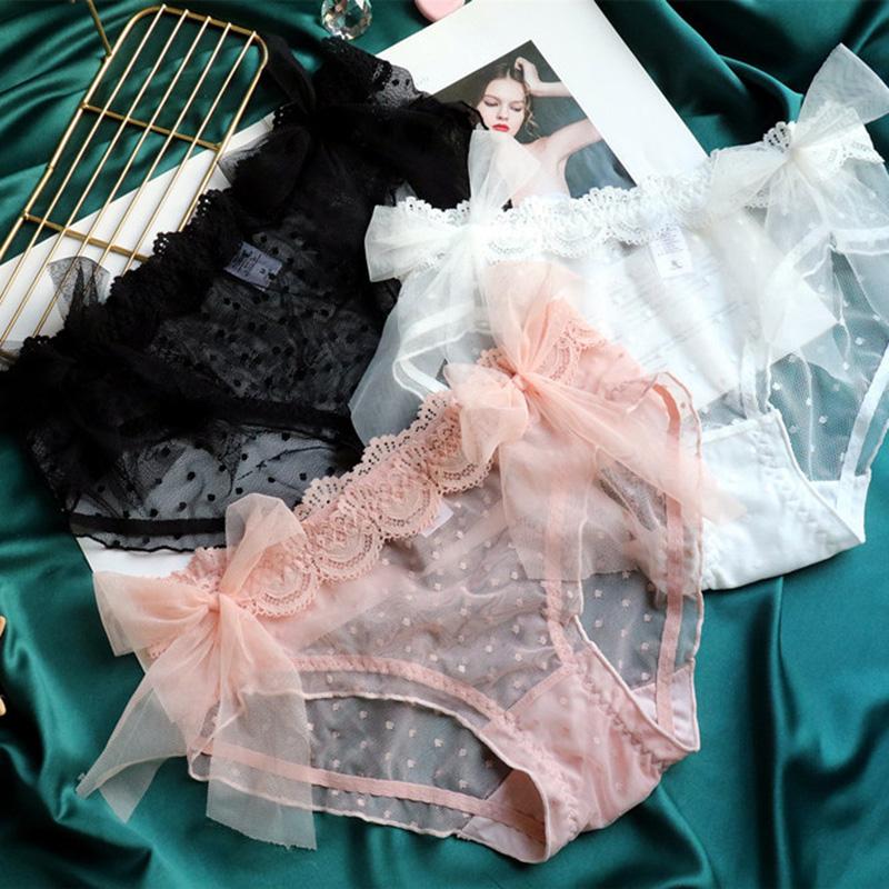 Женское сексуальное прозрачное нижнее белье, кружевные трусики в горошек, трусы с бантом, полые трусы, дышащие трусы со средней талией