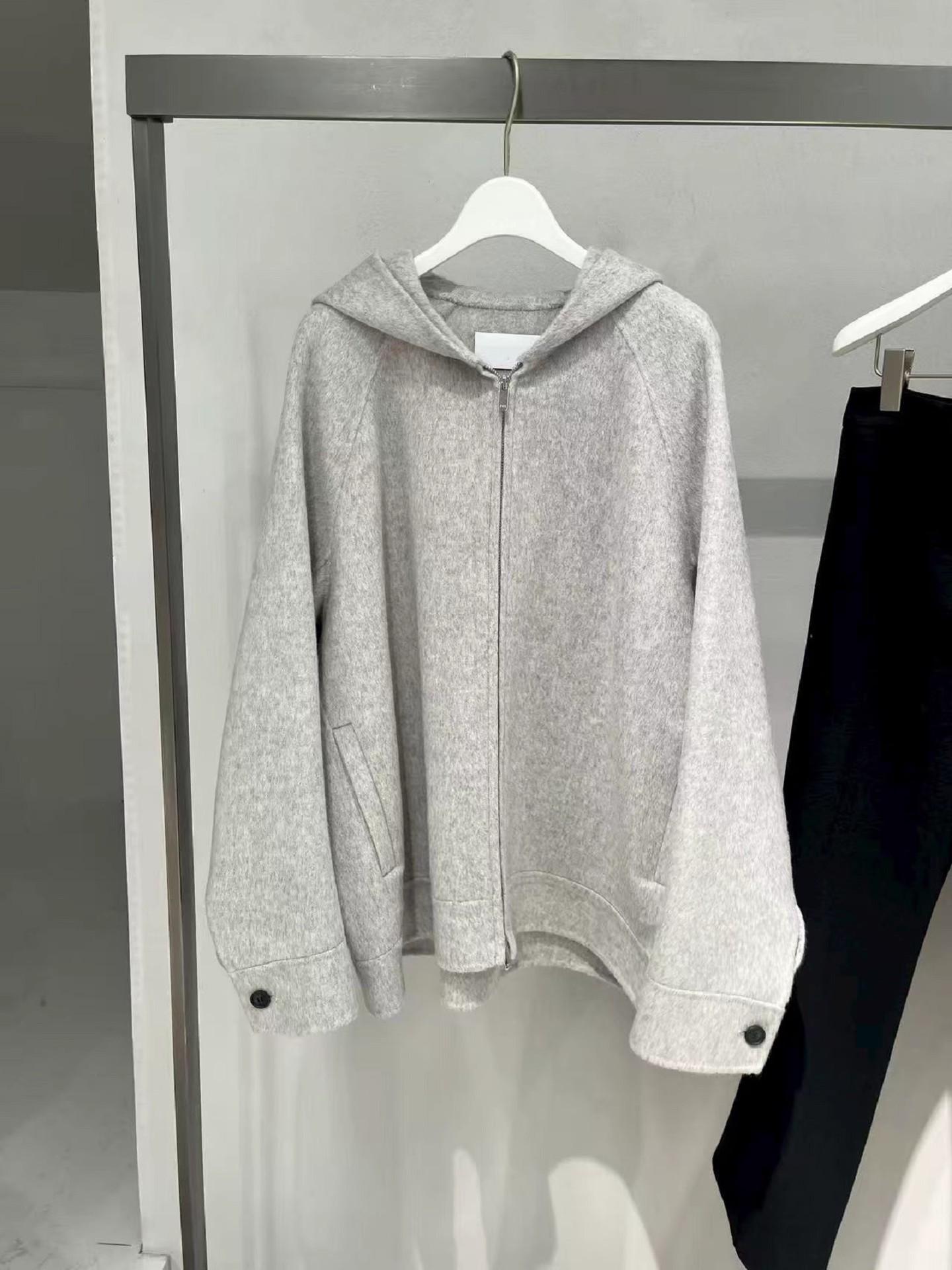 Женское серое шерстяное пальто с капюшоном M** - Коллекция Осень/Зима 2025, Свободный крой, Приталенный дизайн Small светло-серый