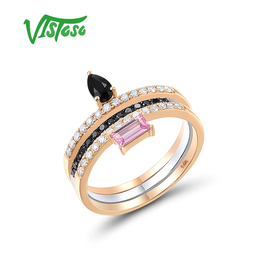 Женское составное кольцо с сапфирами VISTOSO, розовое/белое золото 14 к 585 пробы, со сверкающими бриллиантами и черным розовым сапфиром, модные ювелирные украшения из драгоценных камней