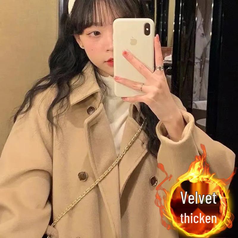 Женское стеганое шерстяное пальто средней длины свободного кроя - в корейском стиле, готовое к зиме S