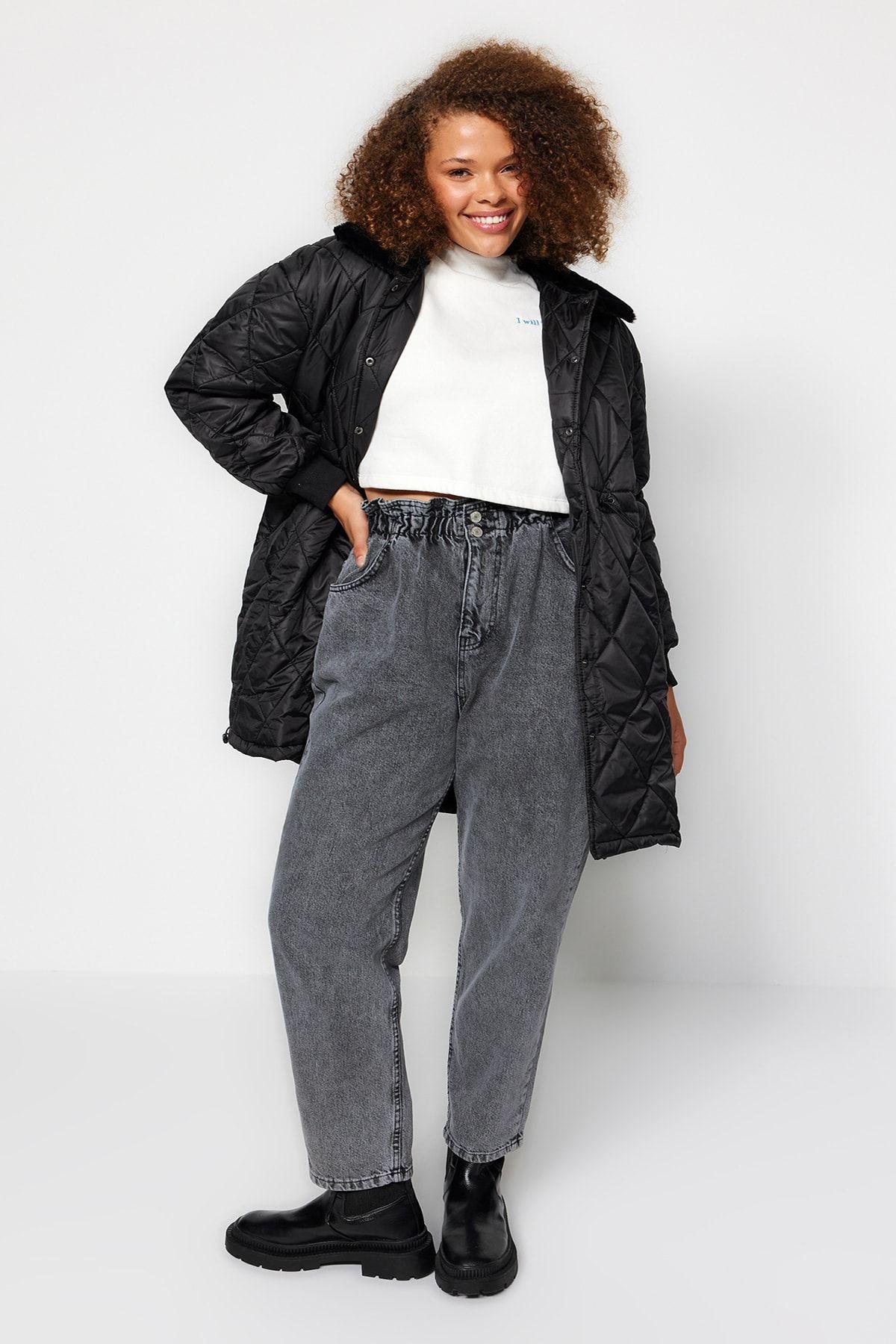 Женское стильное черное плюшевое пальто со стеганым воротником больших размеров XL
