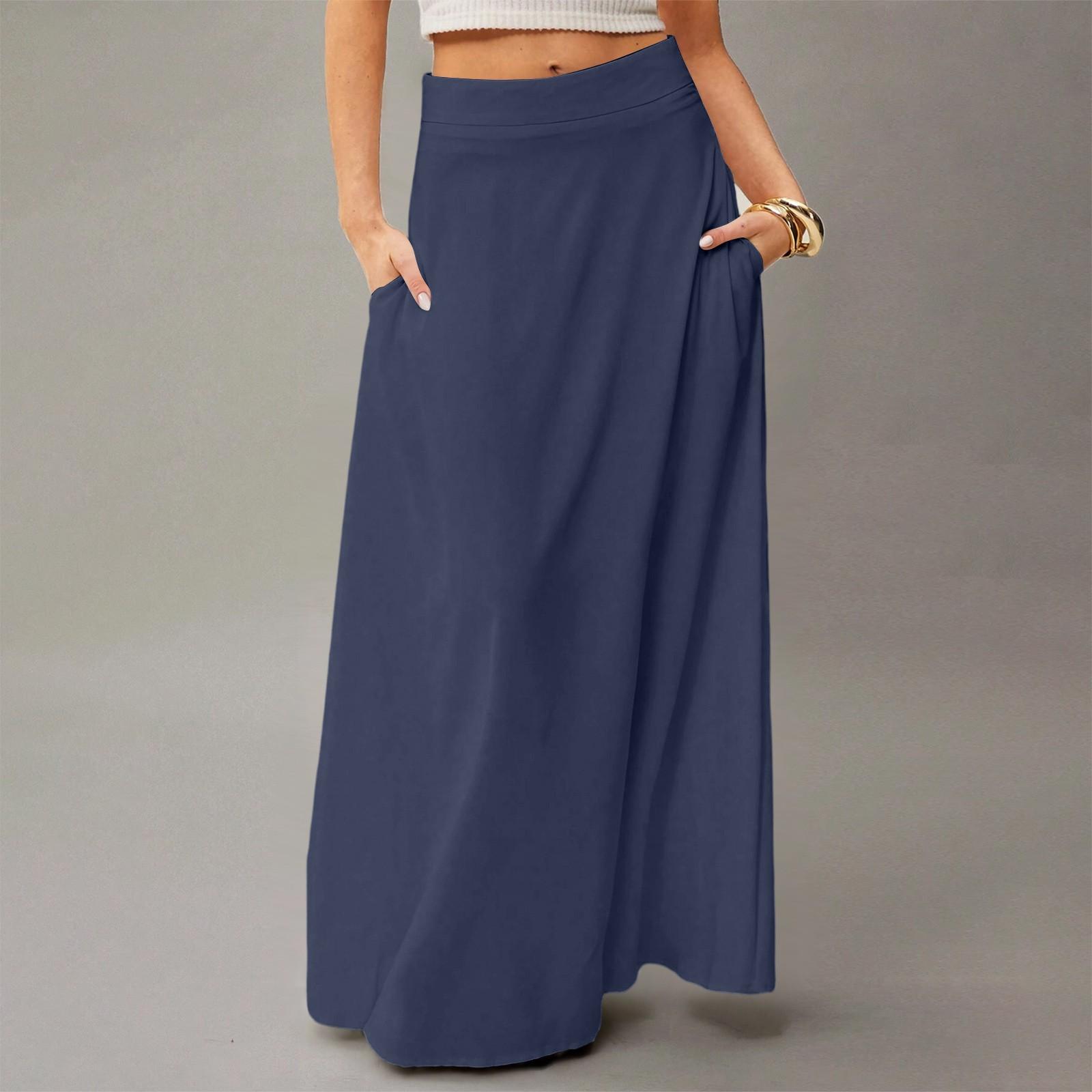 Женское струящееся платье макси, обычная повседневная летняя юбка в стиле бохо S тёмно-синий