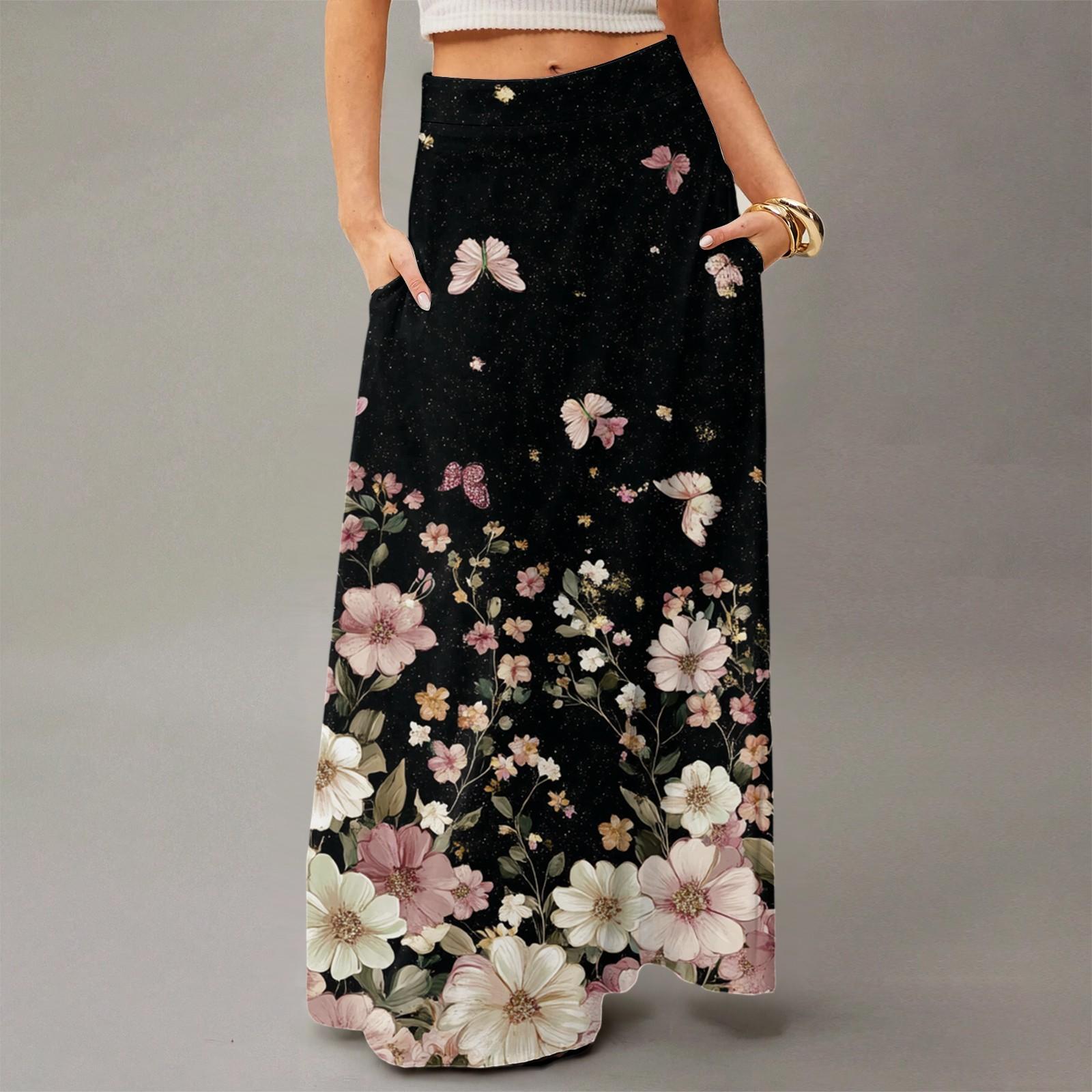 Женское струящееся платье макси, обычная повседневная юбка в стиле бохо с цветочным принтом L чёрный