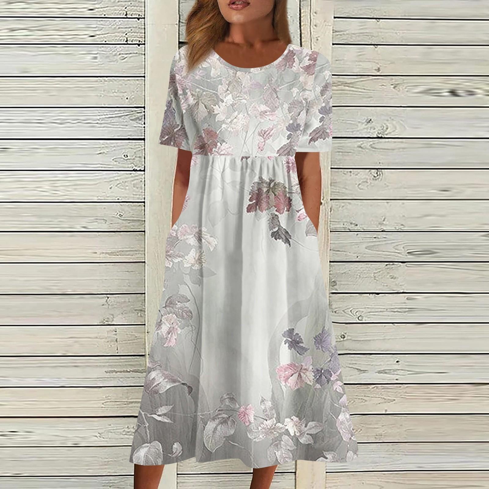 Женское струящееся платье миди в стиле бохо с цветочным принтом, повседневное свободное летнее платье с коротким рукавом для пляжного отдыха и карманами XL