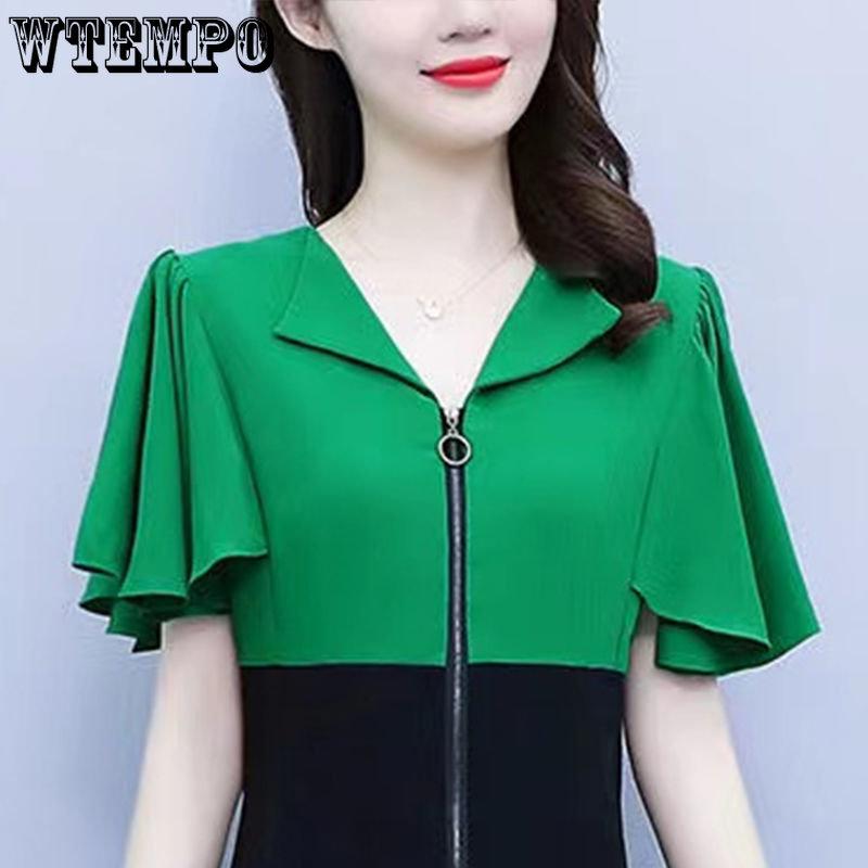 Женское темпераментное платье с застежкой-молнией и застежкой-молнией, летние элегантные пригородные платья с манжетами и рюшами XXXXL зелёный