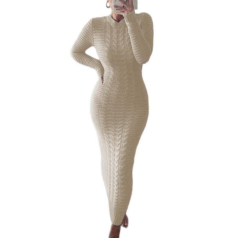 Женское трикотажное платье с длинным рукавом и круглым вырезом, повседневное клубное вечернее платье