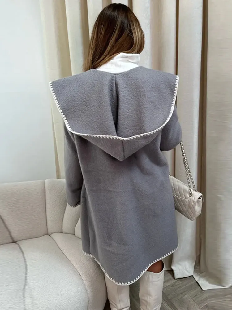 Женское флисовое пальто с капюшоном, элегантная стеганая теплая куртка из смешанного плюша с карманами, свободная шикарная уличная одежда, верхняя одежда, осень-зима 2023