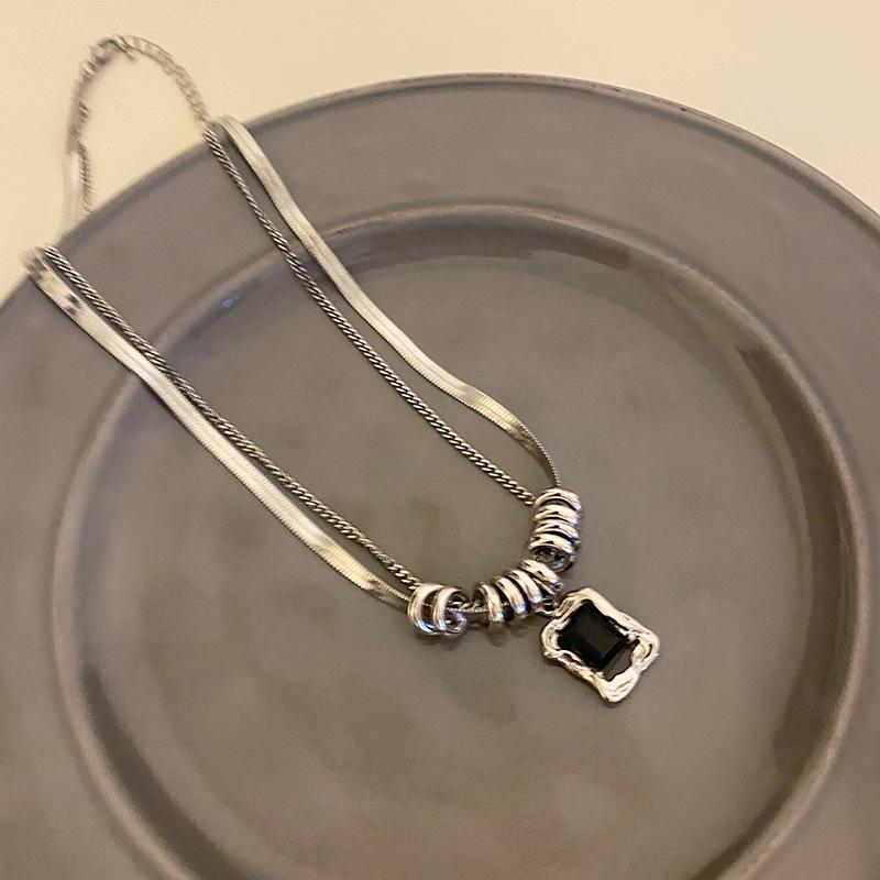 Женское хип-хоп ожерелье с двойной цепочкой: Титановая сталь с черным и белым цирконом, нишевый дизайн цепочки для свитера Осень/Зима 2023.
