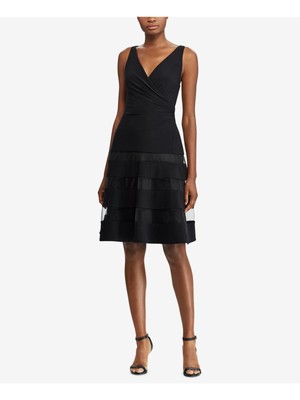 Женское черное вечернее платье выше колена с отделкой из тюля RALPH LAUREN, Черный