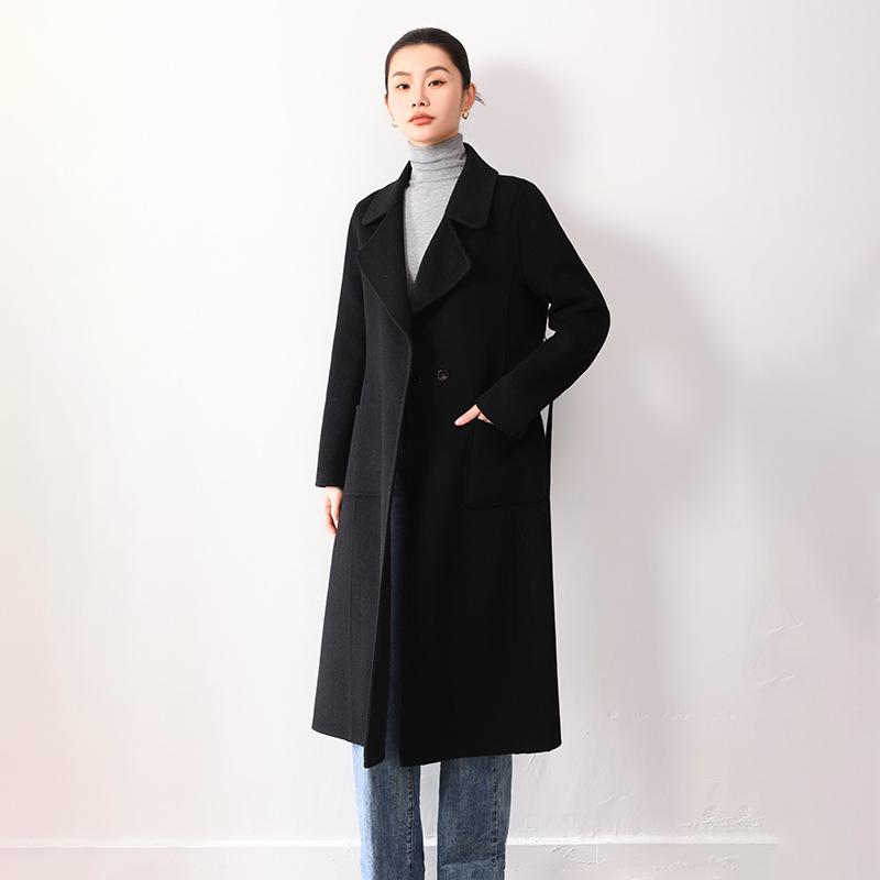 Женское шерстяное пальто двустороннее, приталенного силуэта - Очень длинное, до колена, Мода Осень/Зима L for 115-135 Jin