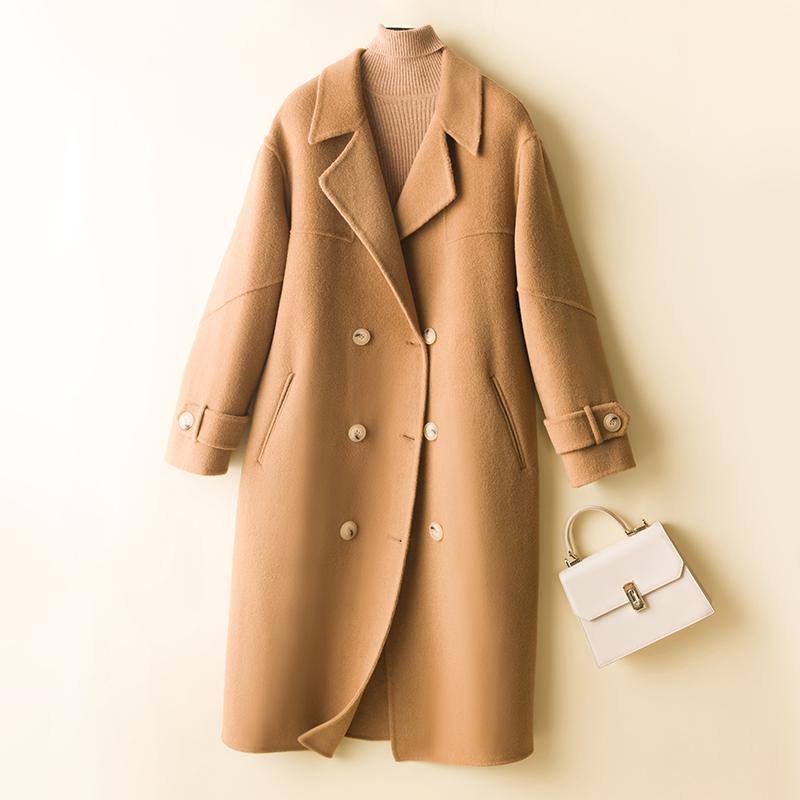 Женское шерстяное пальто из 100% шерсти, осенняя шерстяная куртка средней длины, женское зимнее теплое пальто, двубортное