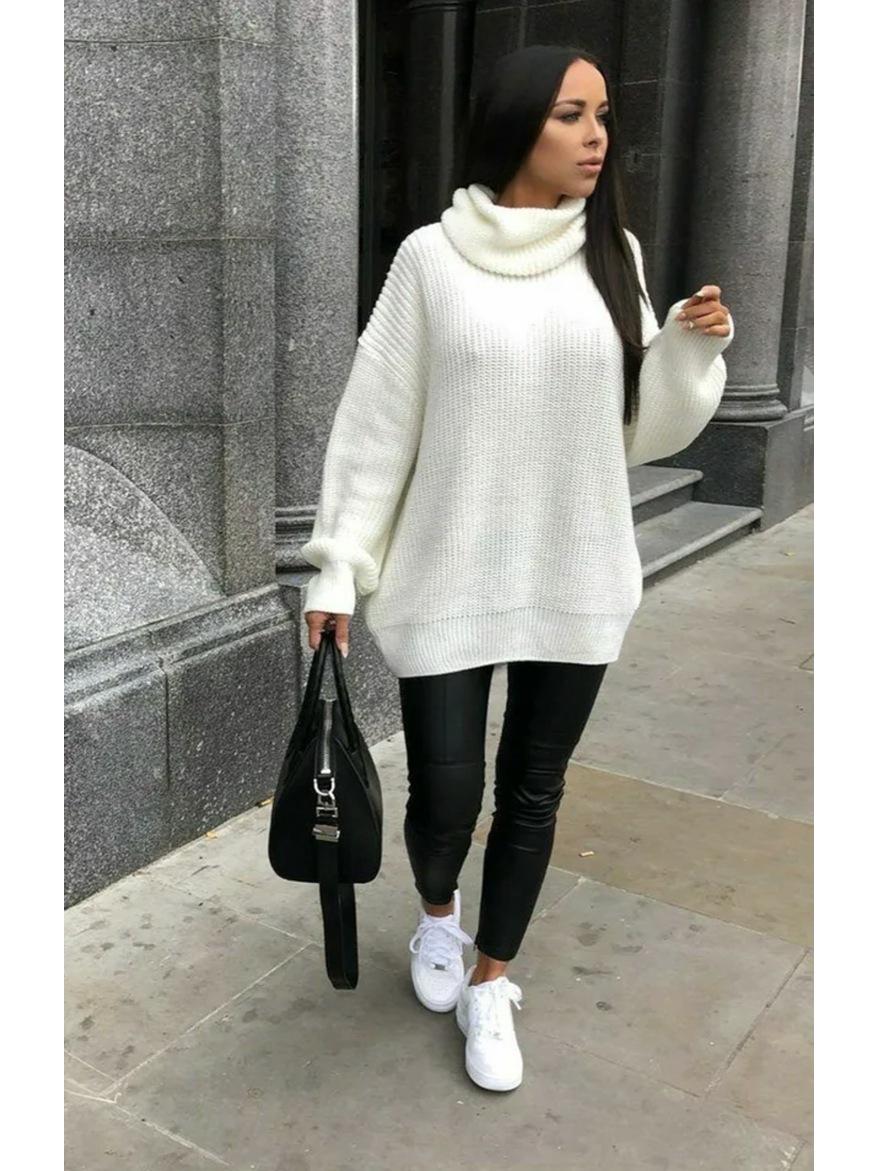 Женское шерстяное платье-свитер средней длины на осень/зиму с лацканом Medium белый