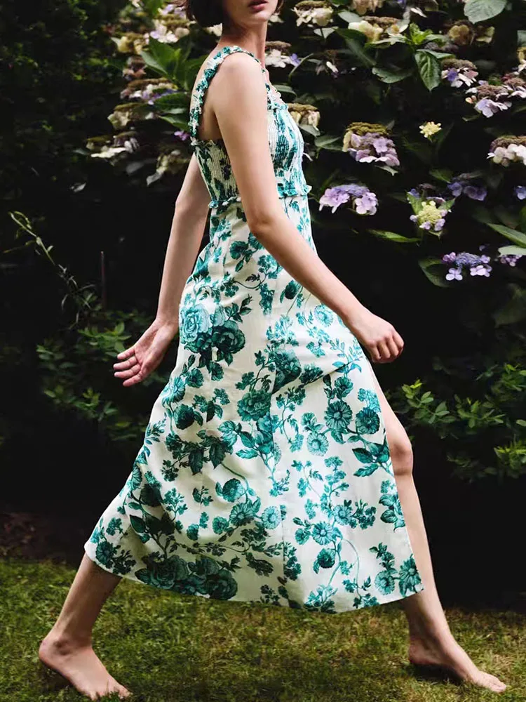 Женское эластичное платье до середины икры, элегантное модное платье-трапеция с принтом, без рукавов, с вырезом лодочкой и Боковым Разрезом, лето 2023
