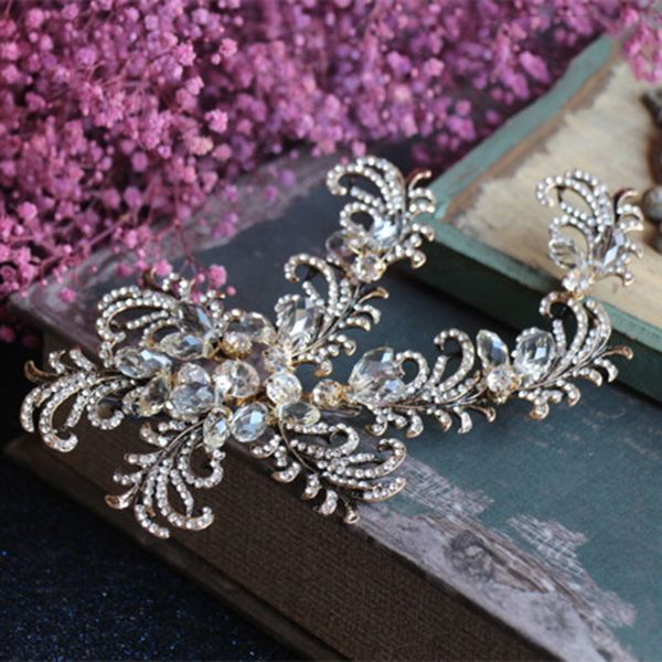 luxury gold bridal headpiece romantic wedding hair accessories prom headdress crystal bridal hair combs handmade hair clips, Golden;white