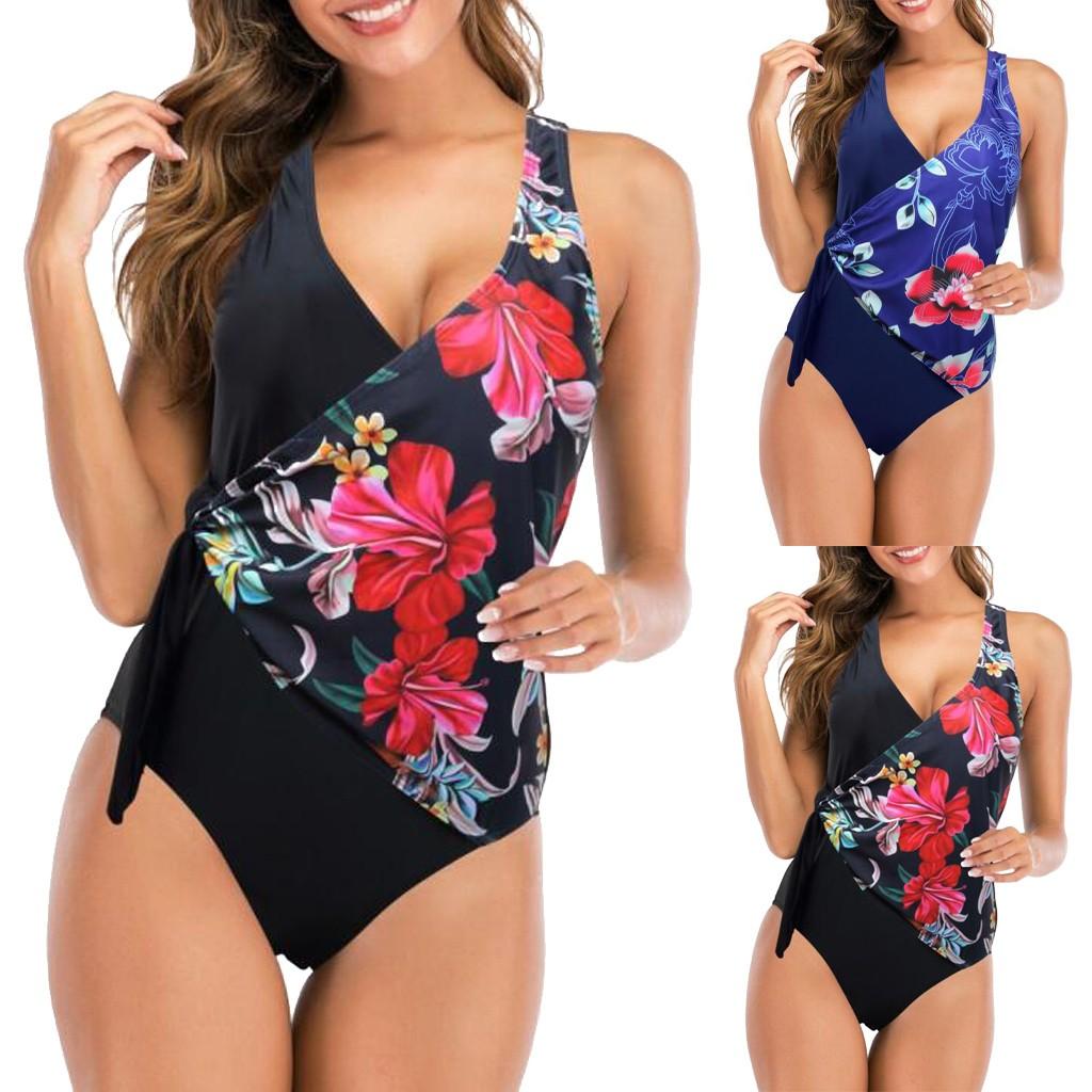 Женщины Плюс Размер Такини Завязать Печати Винтаж Купальники Купальник Женский Ретро Бикини