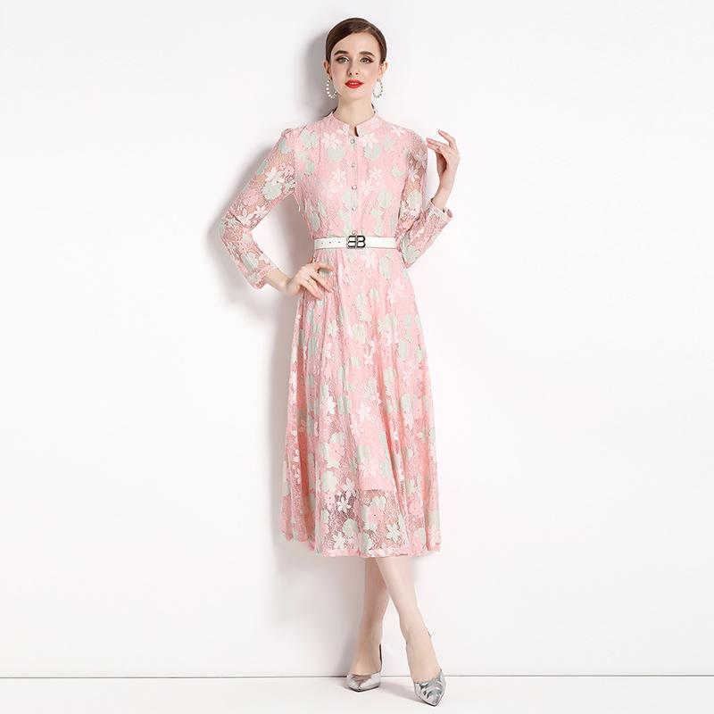 Женщины Розовые кружева Платья Лето Весна Офис Леди Однобортный Цветок Длинный Макси Платья для вечеринок