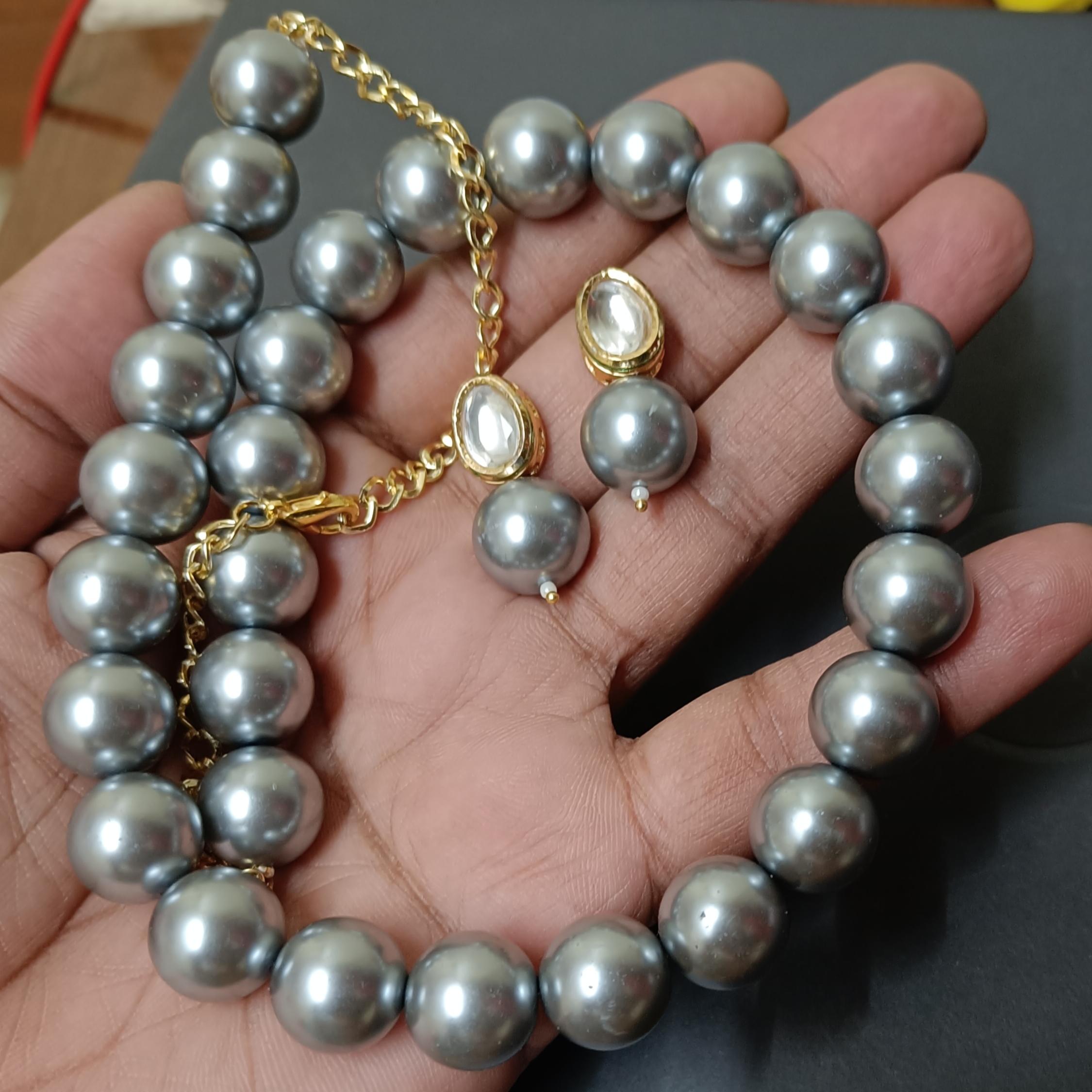 Женщины Свадебная вечеринка Пром Жемчужное ожерелье Ювелирные изделия Металлик Серый