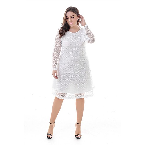 Жен. Большие размеры Классический Тонкие А-силуэт Платье - Однотонный Завышенная До колена