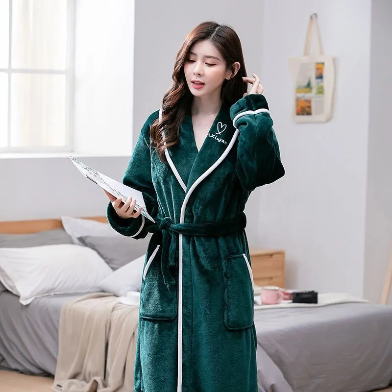 Плюс размер 3XL фланелевой женский халат, одежда для сна, зимняя толстая ночная рубашка из кораллового флиса, свободный повседневный теплый домашний халат, одежда для дома