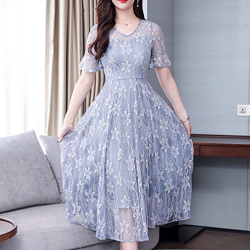Жен. Классический Тонкие А-силуэт Платье - Однотонный, Пэчворк V-образный вырез Средней длины