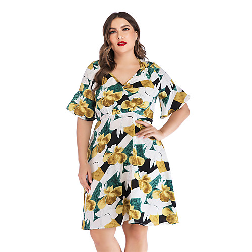 Ткань:Полиэстер; Длина рукава:Рукав до локтя; Длина платья:До колена; Правила ухода:Машинная стирка; Пол:Жен.; Стиль:Уличный стиль,Классический; Эластичность ткани:Слабоэластичная; Детали:На подкладке,Пояс в комплект не входит; Тип посадки:Свободный силуэт; Типы платьев:С летящей юбкой,А-силуэт; Узор:Цветочный принт; Дизайн:С принтом,Пэчворк; Тип выреза:V-образный вырез; Нестандартный размер:Большие размеры; Титульная страница:FF; Листинг Дата:06/04/2019; режим производства,:Собственного производства; Плечо:; Длина:; Ширина плечь:; Рукав:; Талия:; Размер США:; Размер Великобритании:; Соответствует размеру ЕС: