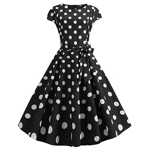Жен. Классический Элегантный стиль А-силуэт Оболочка Платье - Горошек До колена