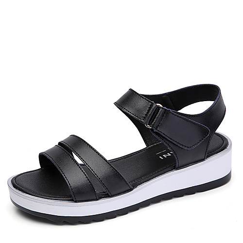 Жен. Кожа Весна & осень / Лето Милая / Стиль ""Школьная форма"" Сандалии Для прогулок На плоской подошве Открытый мыс Белый / Черный